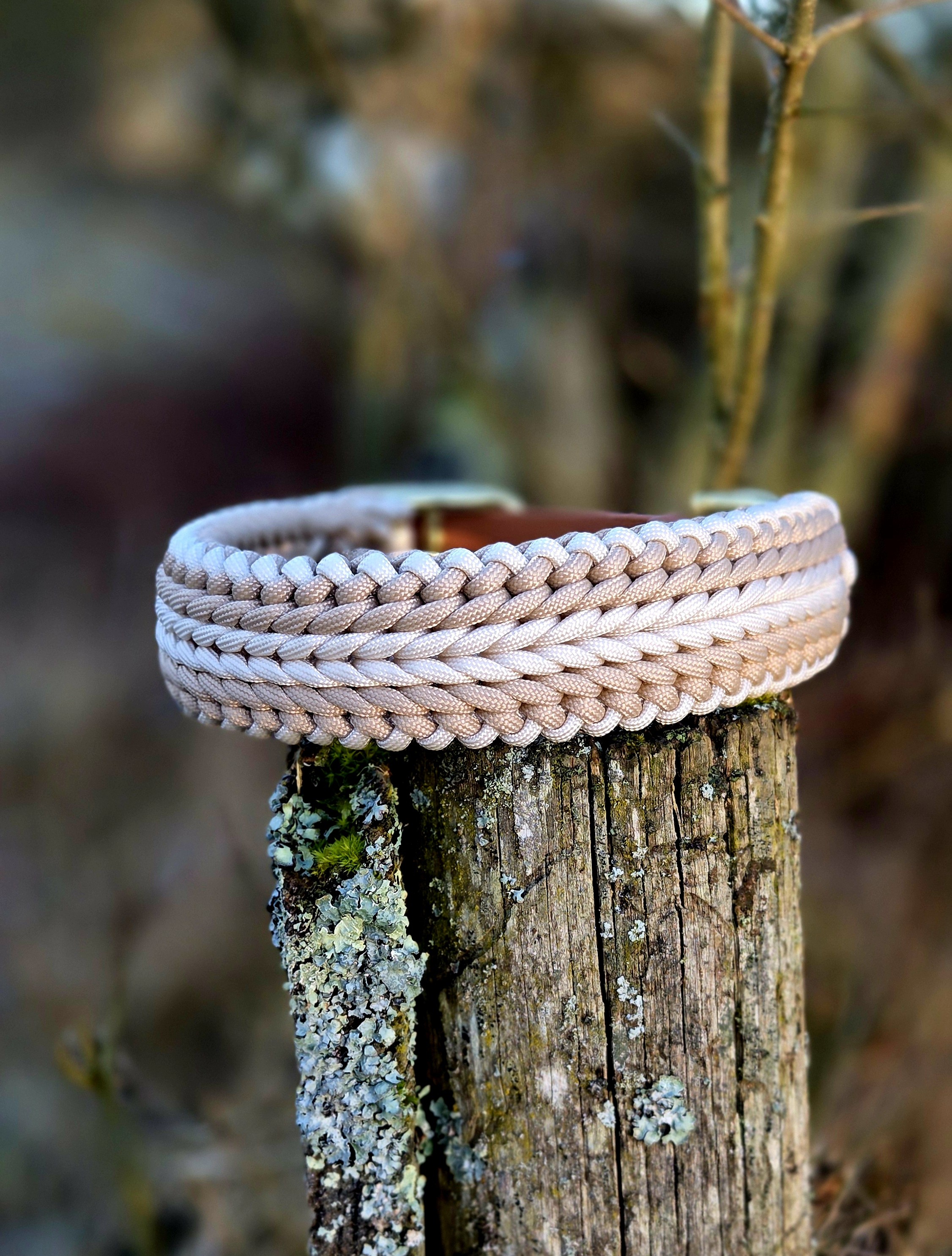 Ich arbeite mit BioThane Adaptern als Verschluss. Das ermöglicht Dir ein verstellbares Halsband. Ich berechne immer auf der mittleren Einstellung. So hast du die Möglichkeit sowohl zwei Löcher kleiner, als auch größer zu stellen.