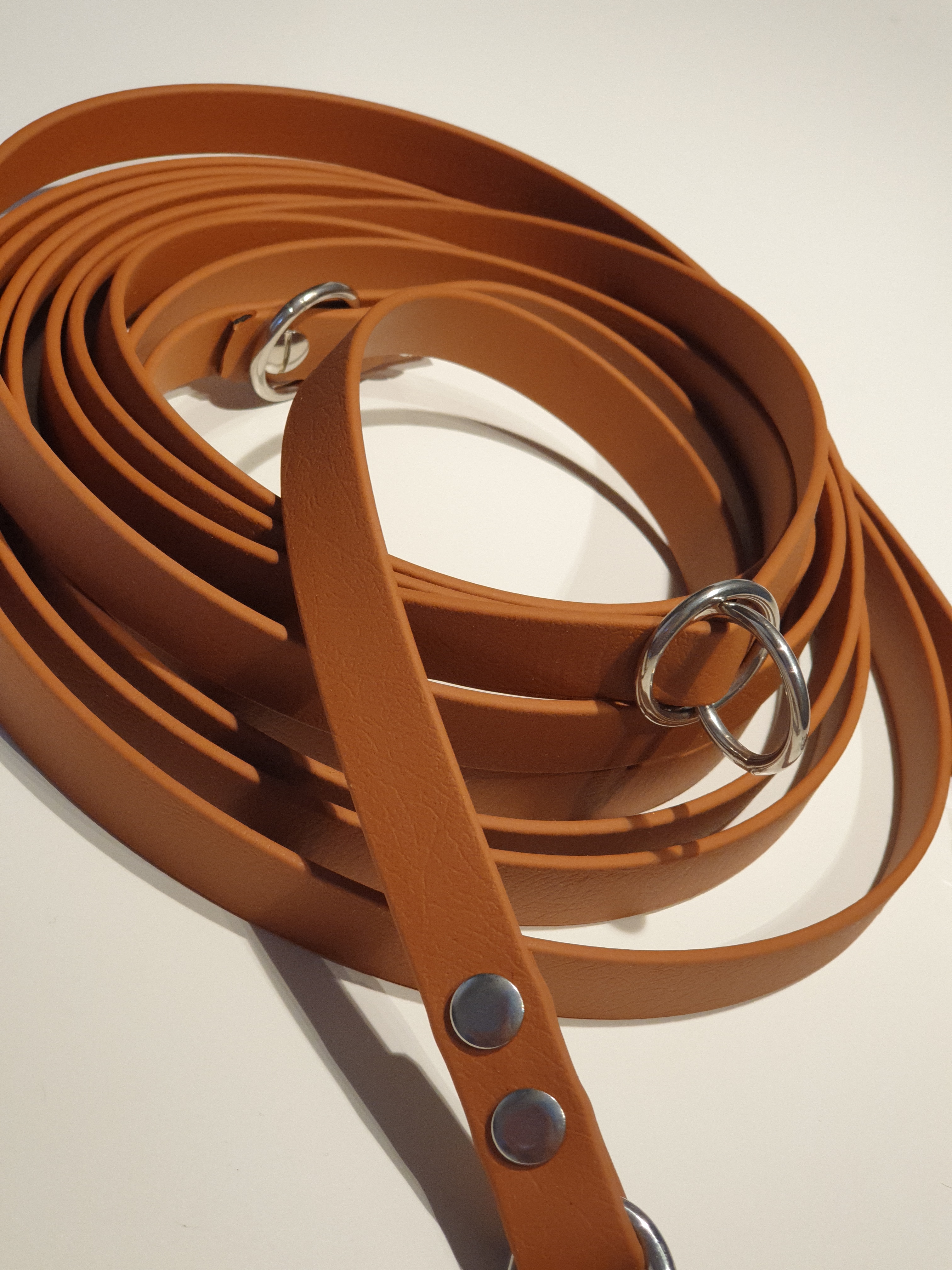 Schleppleine mit flexibler Umhängefunktion aus Original Biothane in 16mm. Gesamtlänge 5m.